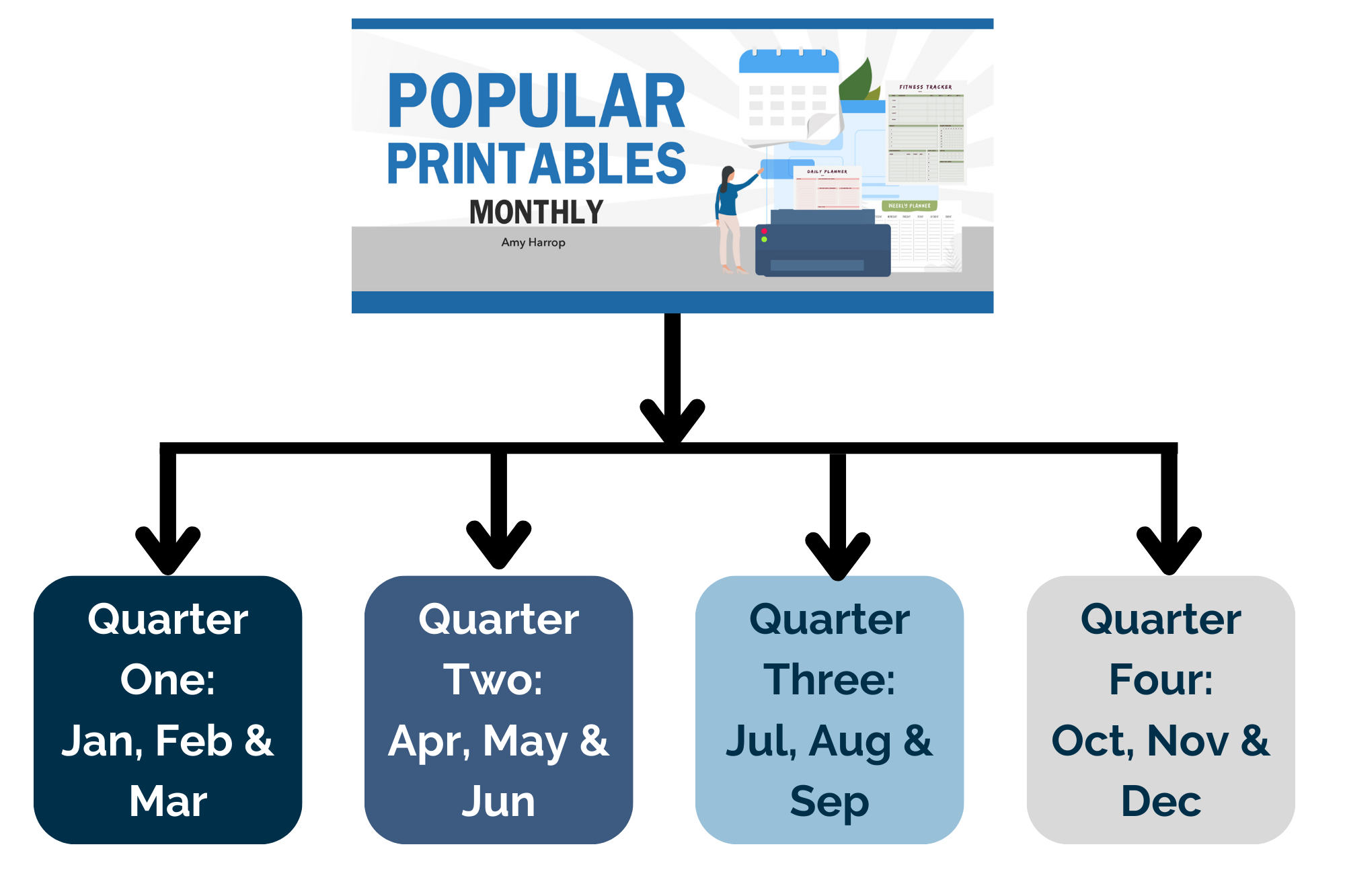Popular Printables Monthly by Amy Harrop is gold. Not gold plated. Pure 24K. I’m a newbie, just getting into printables. Every Printables Marketer touts how easy and quick it is to create a product to sell and they have a system streamlined to help you do that. And most of what I’ve seen is good, worth investing time and money in.