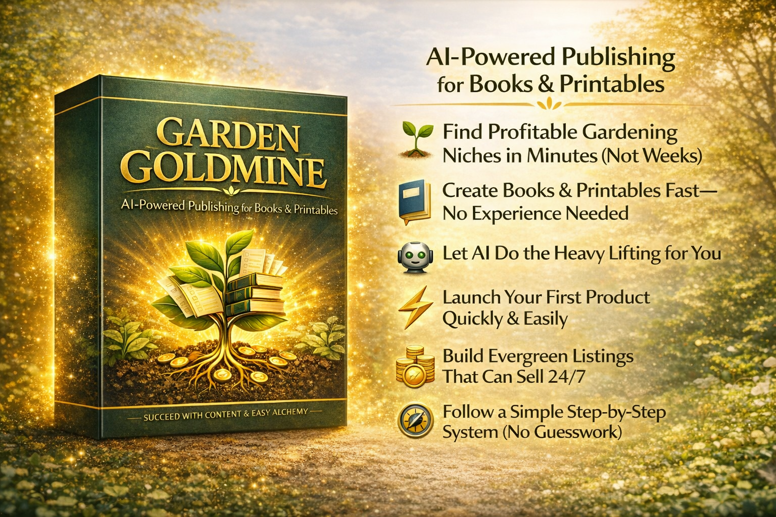 Garden Goldmine is a complete, AI-powered publishing system that shows absolute beginners how to create and sell profitable gardening books and printables on Amazon KDP and Etsy...no gardening knowledge required.