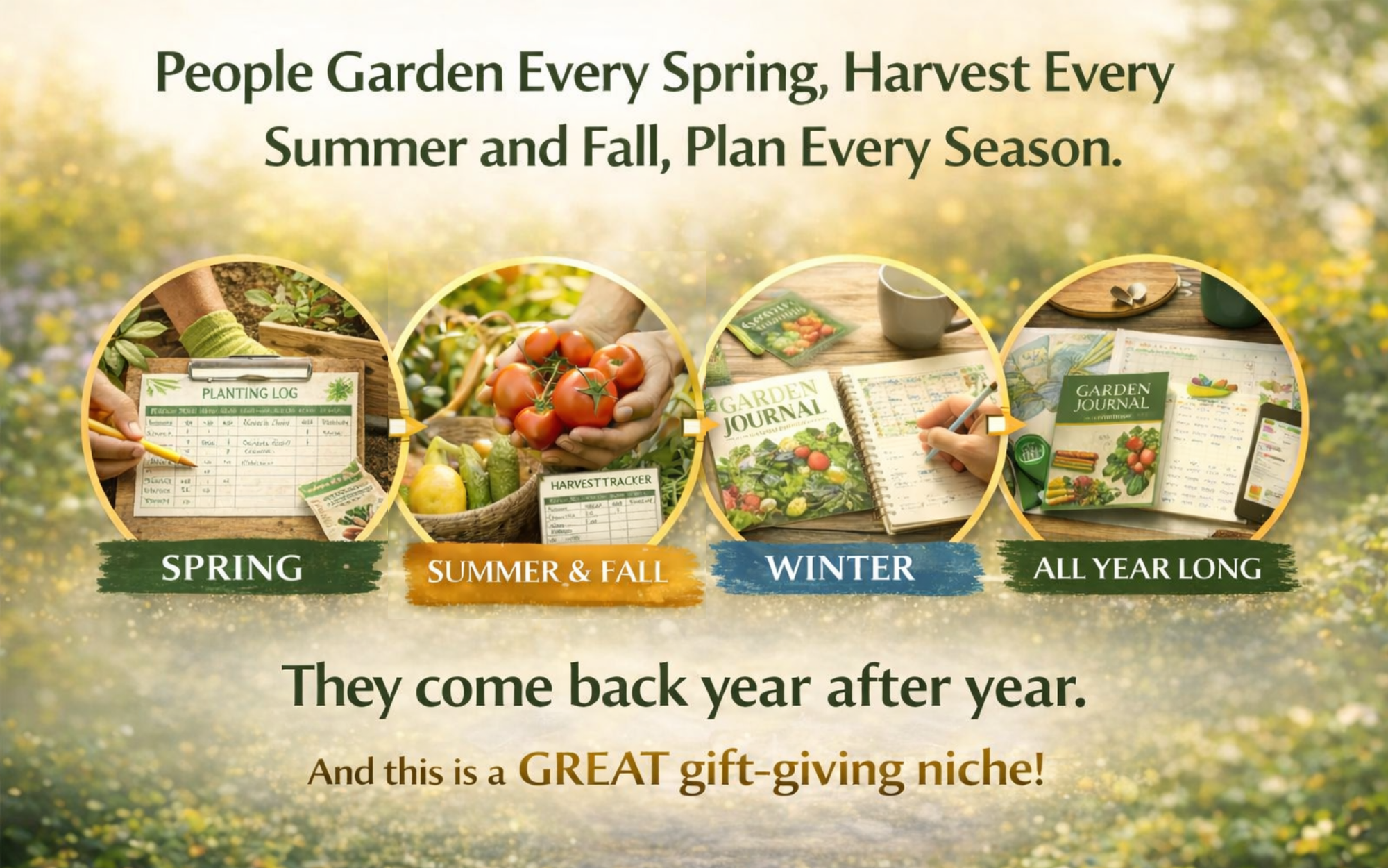 Garden Goldmine: AI-Powered Publishing for Books & Printables - Americans spent $52.3 billion on lawn and garden products last year...and gardeners are hungry for the books, planners, and printables that help them grow better. Garden Goldmine shows you exactly how to tap into this evergreen, billion-dollar market with profitable digital products on Amazon KDP and Etsy.
