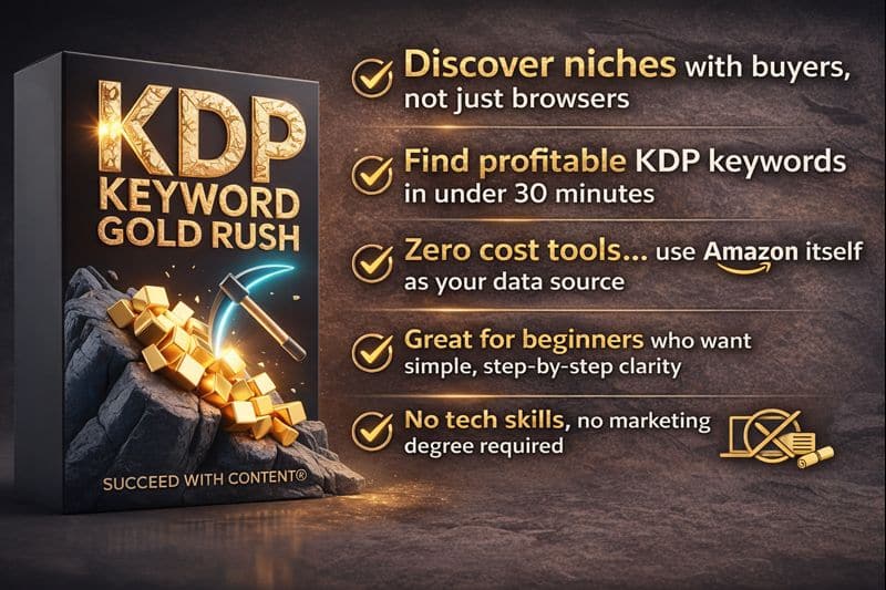 Hey there, Amy Harrop here, and I’m excited to invite you to promote my brand-new release: KDP Keyword Gold Rush.