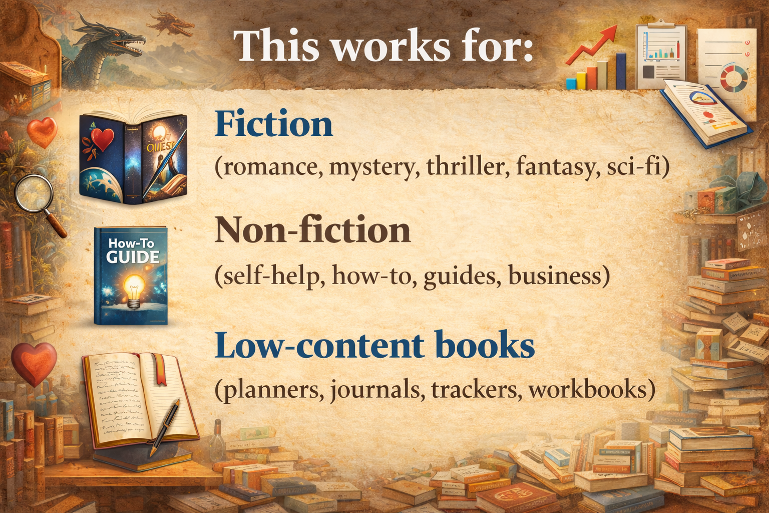 - Genre-specific templates (Romance, Non-Fiction, Low-Content)